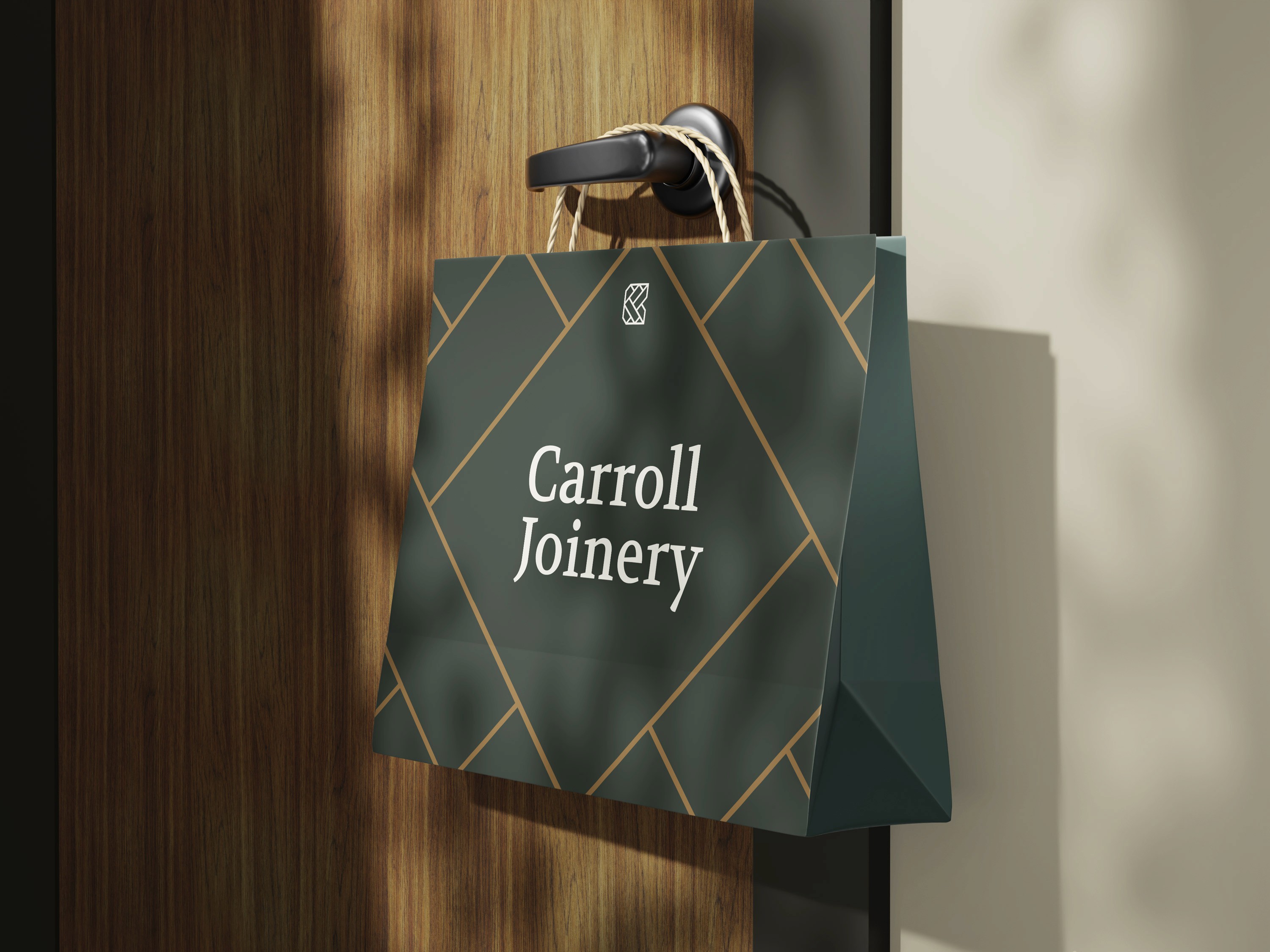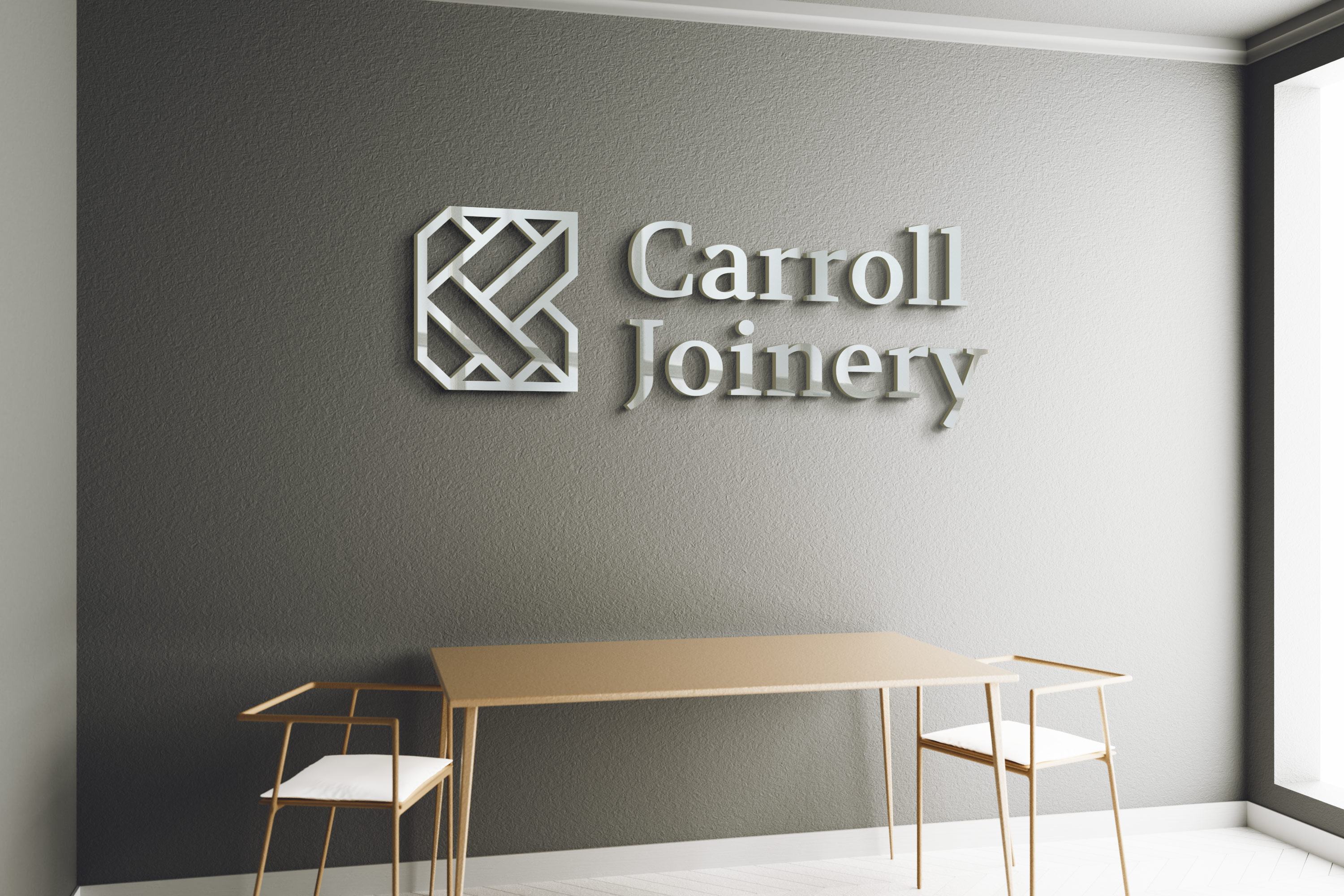 This concept celebrates Carroll Joinery’s long-standing heritage and reputation for trust and reliability. The refined design reflects quality and expert craftsmanship, with a logomark that integrates a door, the letter “C,” and wood joint elements to symbolise precision and tradition. A sophisticated font and colour palette convey high quality, confidence, and enduring excellence.