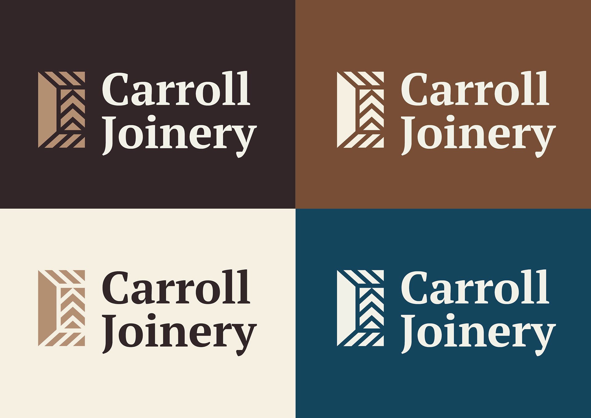 Developed rebrand concepts for Carroll Joinery, identifying an opportunity to modernise a traditionally styled sector while respecting craft and heritage.