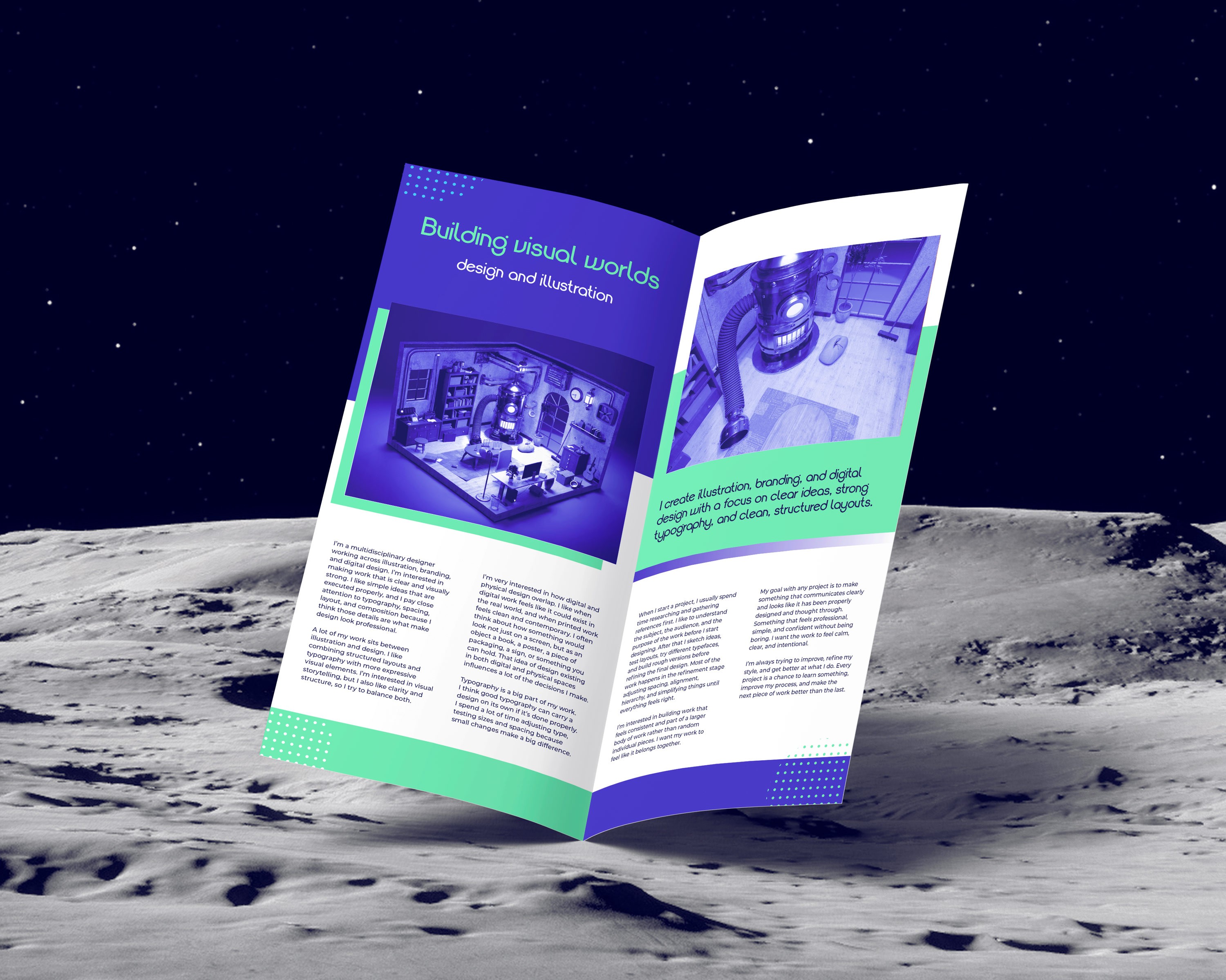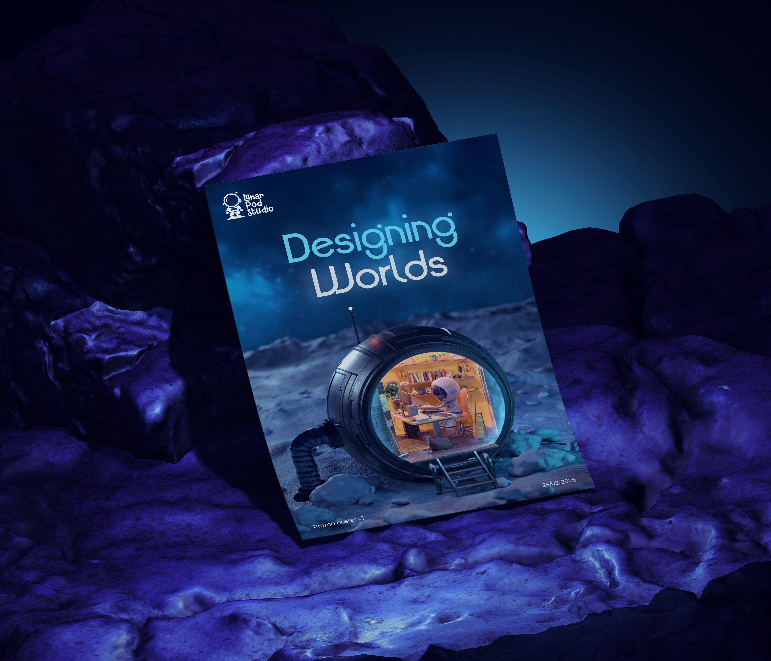 This 3D render was made for my website’s landing page as an intro to who I am and what I do. It sets the tone and shows a tiny astronaut working from his pod on the moon.