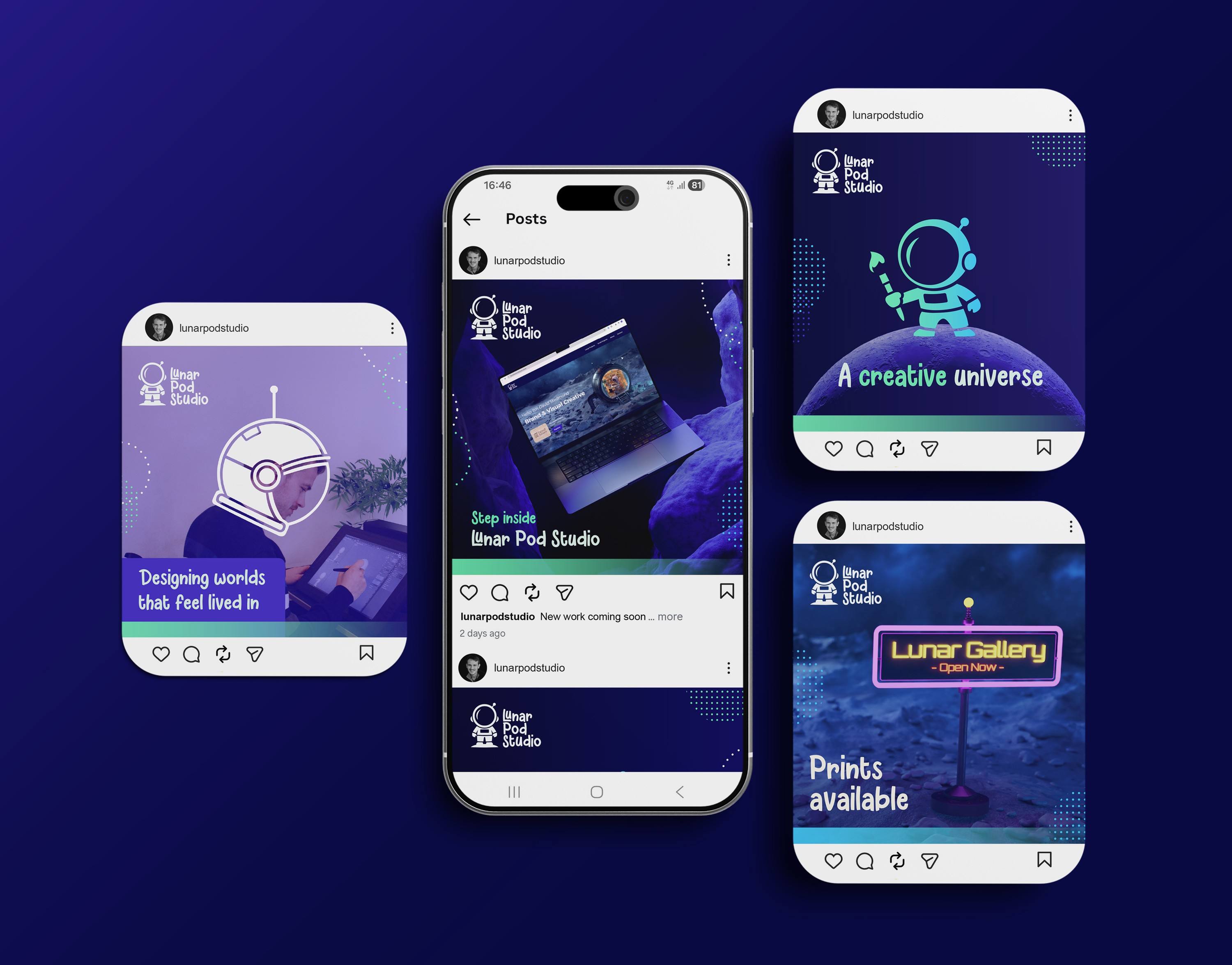 Developed a cohesive brand identity spanning illustration, motion, and 3D. Built around the concept of a “studio on the moon,” the system creates a distinctive and consistent narrative across touchpoints.